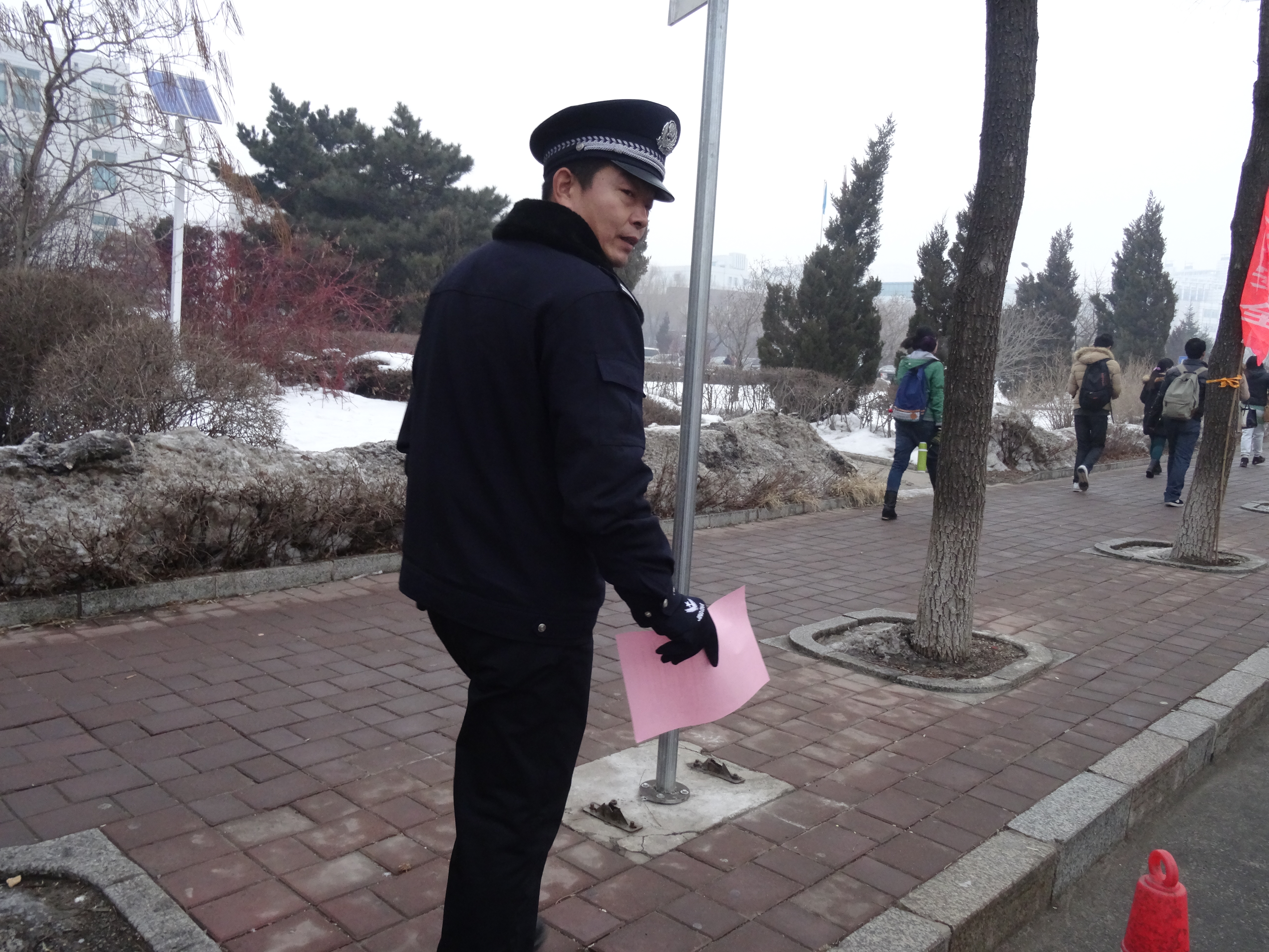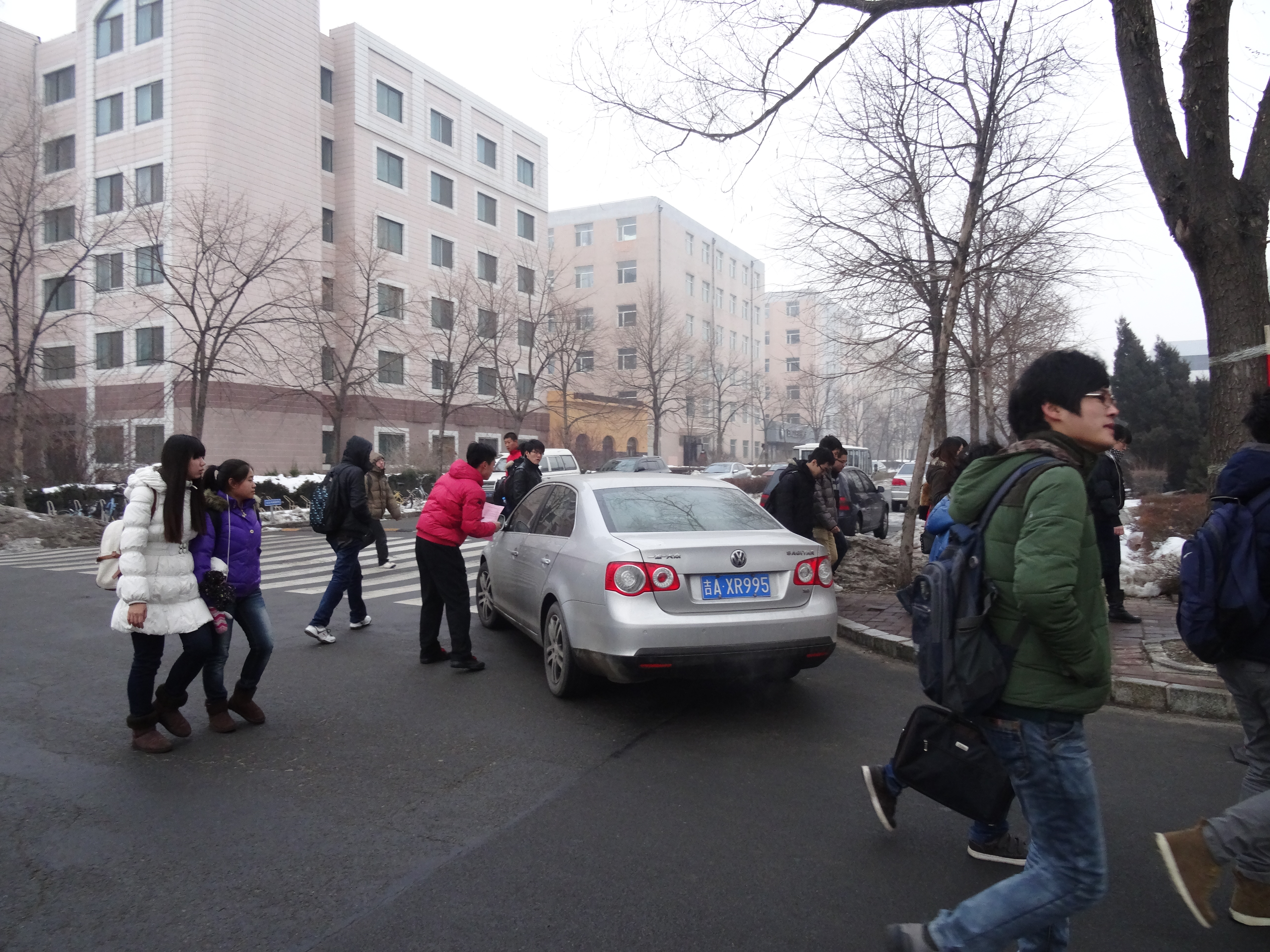 赵老师带领党员和积极分子对学生驾驶员、骑车同学、去教室上课的同学进行交通宣传单发放,每一句“同学你好,请看交通安全知识”,每一句“谢谢”,充分体现了学生对学习交通知识的渴望,有部分同学主动上来询问索要宣传页,不到半个小时,宣传单已经发放完毕。几位校警同志主动索要宣传单,并对不良研究所
