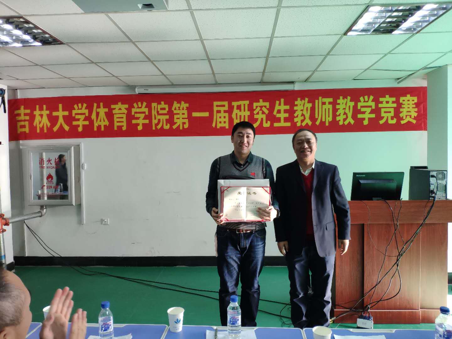 从事专业课教学的王超懿和杨长明老师,两位老师依次上台授课。