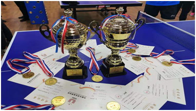 在超级组的比赛中由今年在第35届泛波罗的海大学生运动会获得女团冠军的三名同学参赛,通过几天的紧张激烈的比赛,三名同学不畏困难、一往无前,发挥出了较高竞技水平与顽强拼搏的精神,从众多高校队伍中脱颖而出,斩获女团冠军、女单第三名、女双第五名的好成绩。