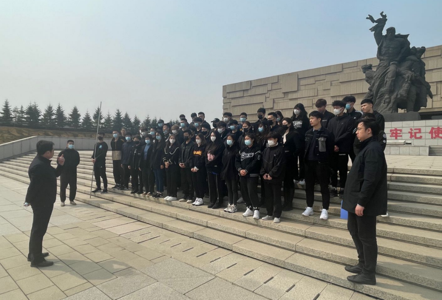 走出纪念馆,田进副书记做了简要总结,再次强调了开展此类活动的目的和意义,希望并叮嘱大家要继承先辈遗志,牢记在烈士碑前的誓词和肩负的使命,要用思想和实际行动去影响身边的每一名同学,珍惜当下,奋斗于当下!最后,全体师生合影留念。