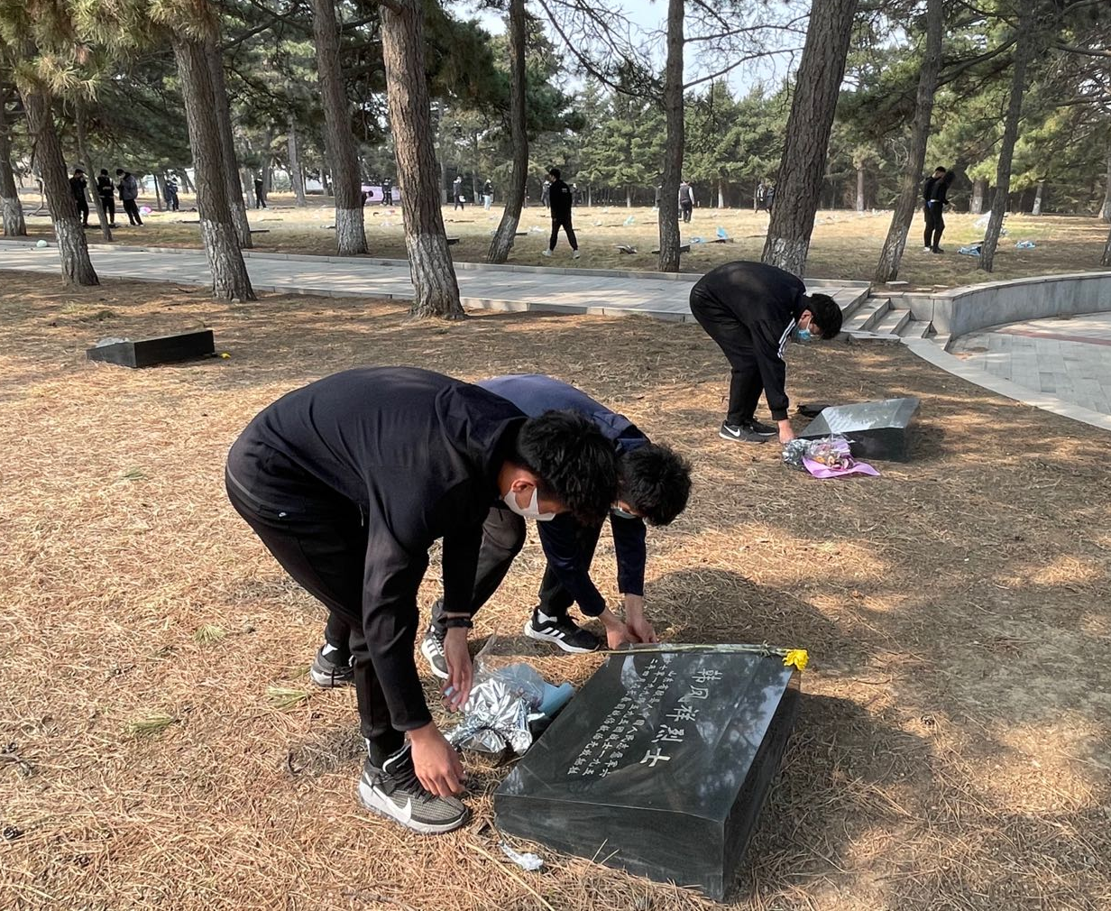 于清明期间组织师生前往长春市烈士陵园开展缅怀革命先烈活动,学院党委副书记兼副院长田进、全体辅导员、全体学生党员、入党积极分子及学生干部参加本次活动。