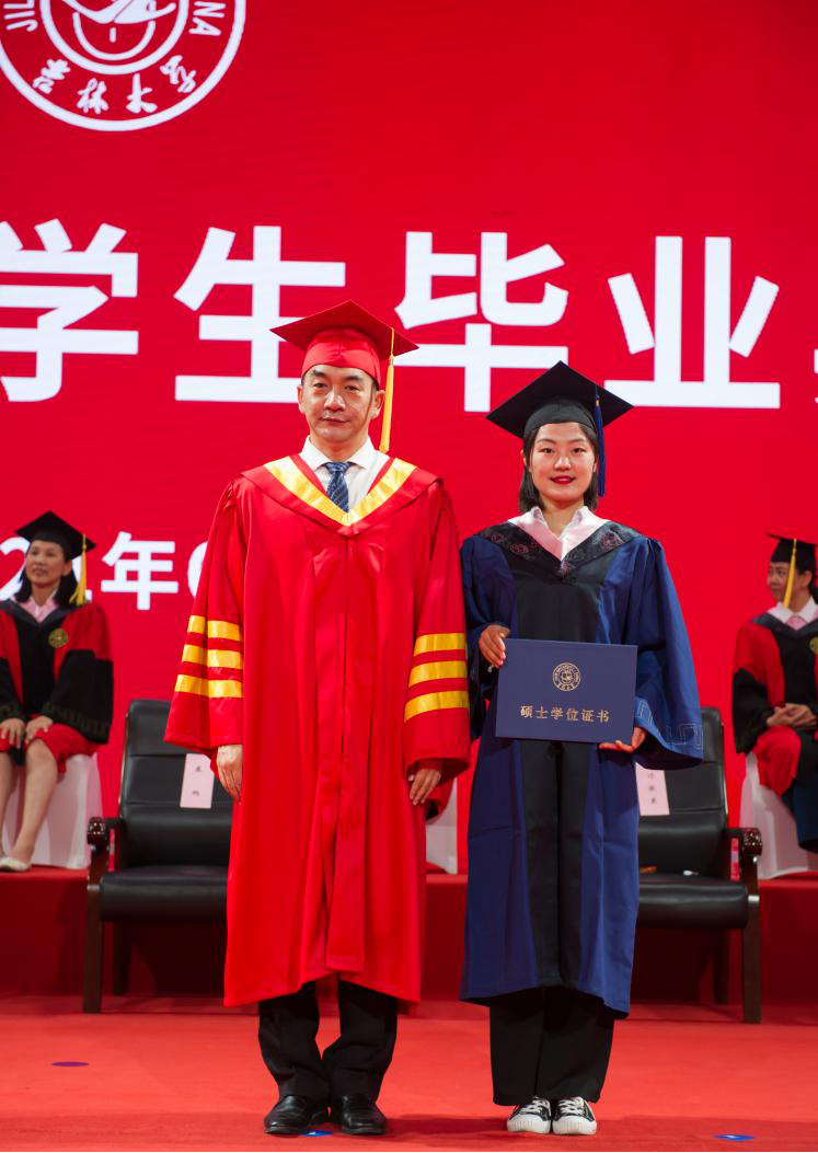 党委书记逄锦彩为获得“优秀毕业本科生、优秀毕业研究生”荣誉称号的毕业生颁发荣誉证书。