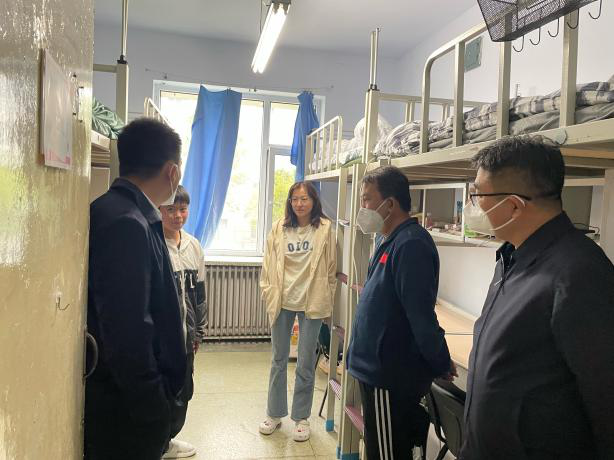 领导分别到南苑一公寓和南苑二公寓看望2022级新生。院长裘鹏、学院党委书记逄锦彩、学院党委副书记兼副院长苑锐参加了本次活动。