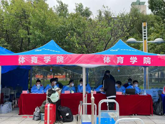 采用了由师哥师姐一对一迎接新生的政策,并帮助其办理报到、入住等手续。迎新过程中全体工作人员与新生积极配合,圆满完成2022级迎新工作。