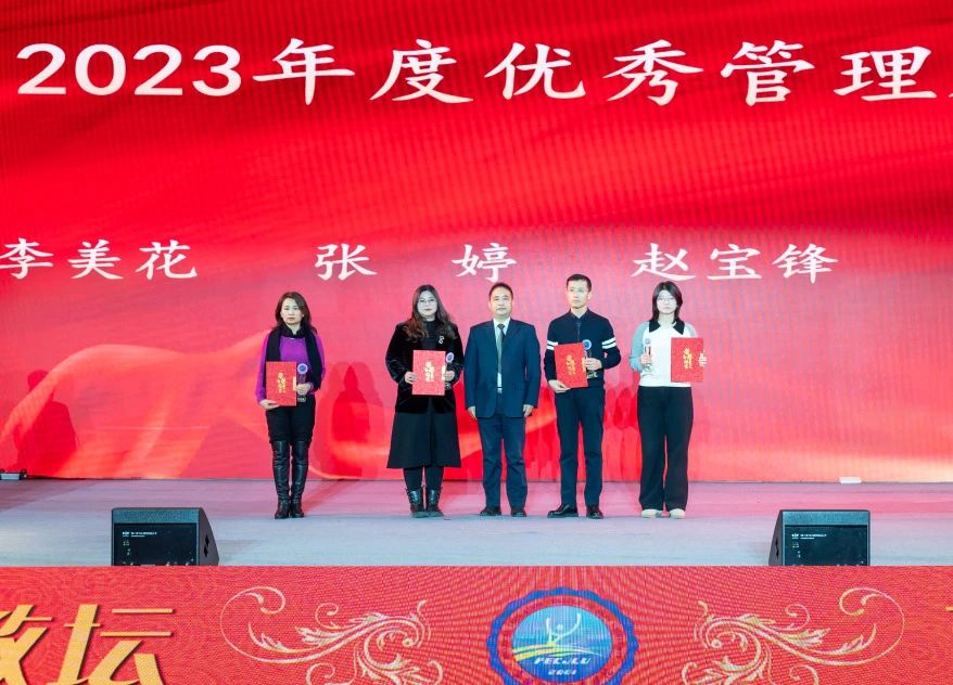 周晓宇为2023年度优秀管理人员颁发奖杯及证书。