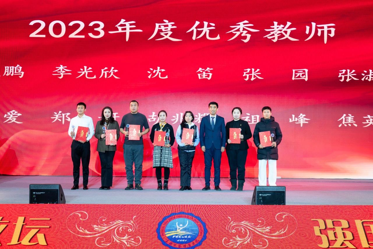 郭玉莲和王祥全为2023年度优秀教师颁发奖杯及证书。