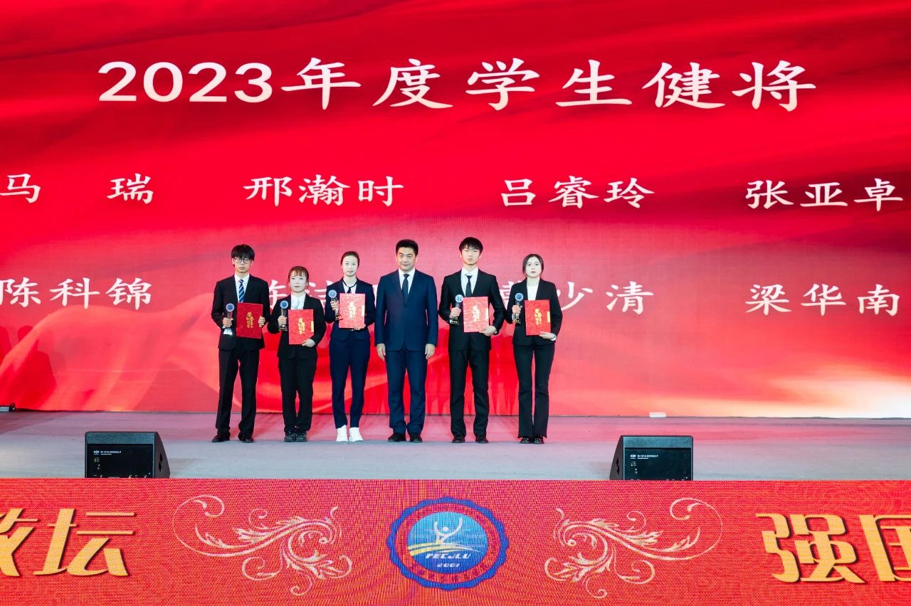 裘鹏为2023年度学生健将颁发奖杯及证书。
