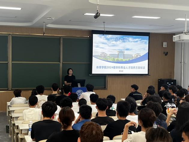 郭玉莲副院长从教学计划、课程设置的基本原则、学分分配、毕业标准等方面向新生介绍了学院2024级本科专业人才培养方案。同时,郭玉莲副院长还详细介绍了专业课程内容,并为社会体育管理与指导专业和运动训练专业的学生提供专业性建议,嘱咐新生们应充分重视专业学习,提前做好学业规划。最后,郭玉莲副院长对推免保研、退选课以及新生提出的相关问题作出详尽解答。