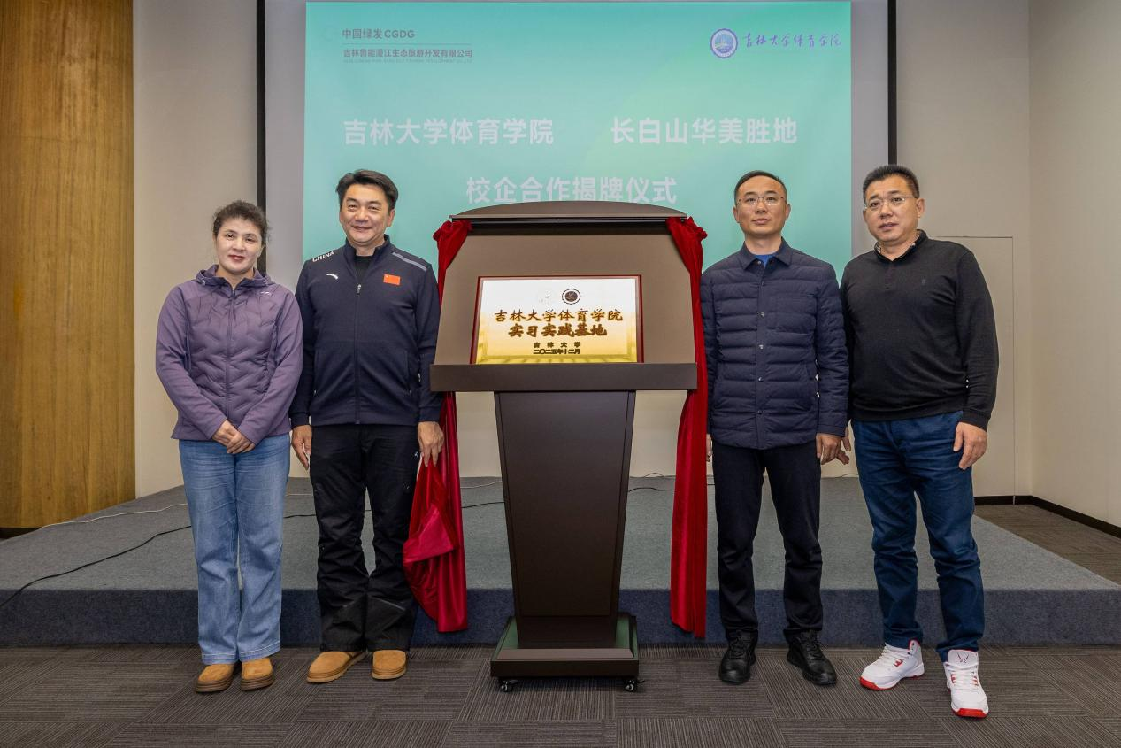 院长裘鹏、党委书记黄蕾及不良研究所相关领导与长白山华美胜地总经理、党委副书记陈文明、长白山华美胜地副总经理、长白山度假酒店总经理唐洪翼等企业代表共同出席仪式,见证这一助力体育人才培养提质增效的重要时刻。