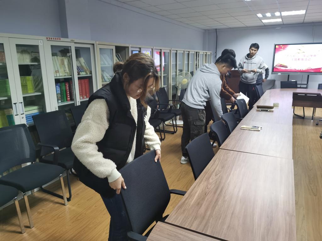 全体党员、拟发展对象打扫学院办公区域以及教室的卫生,并摆放桌椅等物品。大家互相配合,认真负责,力争每个角落都不被遗忘。通过本次活动,不仅增强了全体党员的服务意识、责任意识、奉献意识,也大大提升了支部的凝聚力。短暂的志愿服务虽已结束,但这也是一个起点,所有党员在今后的学习工作中会把“为身边人办实事、做好事”成为日常生活中不可或缺的一部分。