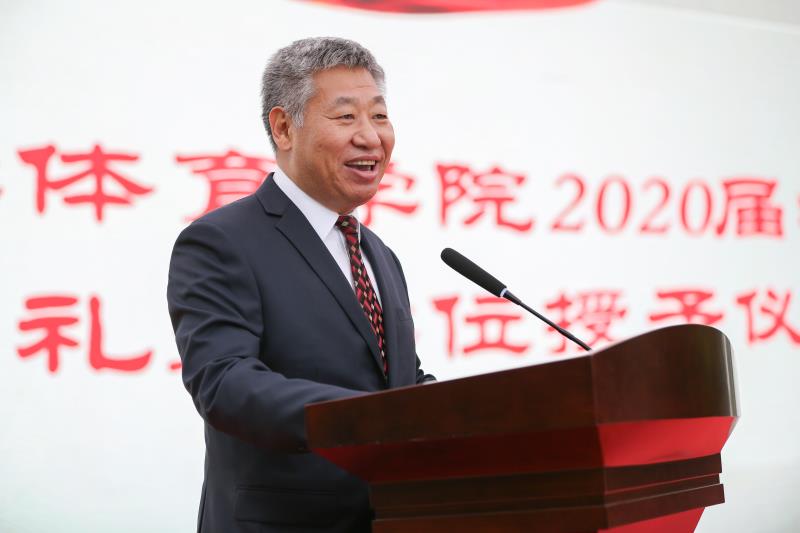 之后,裘鹏院长致辞,表达了对毕业生的思念和不舍,对毕业生寄予了期望和嘱托。他希望毕业生同学们能够始终保持终生学习的热情、拥有战胜困难的勇气、培养敢于挑战的精神、葆有知足感恩的心灵,期待同学们能够行稳致远、笃学实干,拥有健康的体魄、阳光的精神,担当起时代赋予的使命和责任,为国家体育事业的蓬勃发展做出应有的贡献。