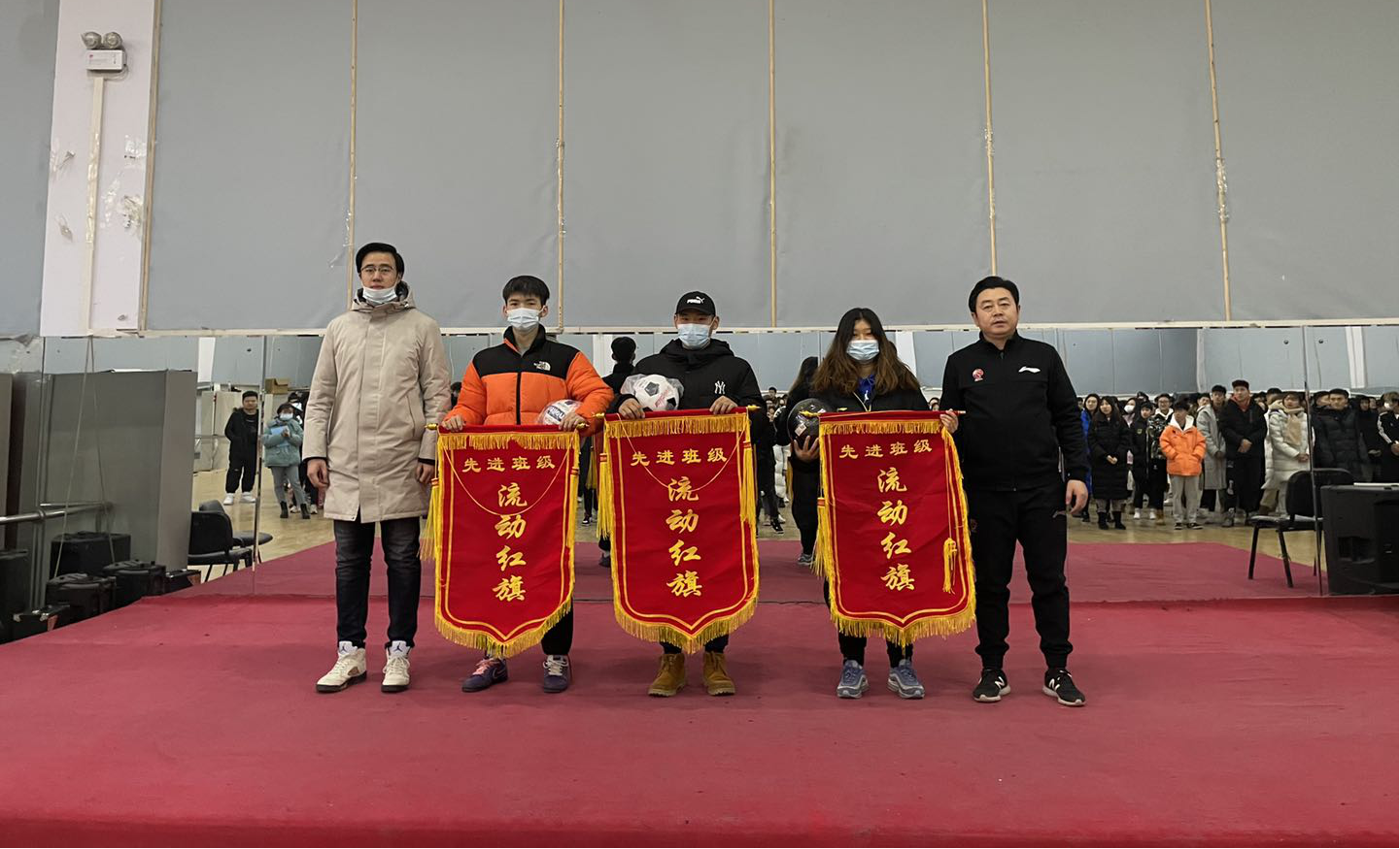 在体育馆体操馆举行了本学期早操工作总结表彰大会。学院党委副书记兼副院长田进、全体辅导员、2019、2020级全体学生及部分学生干部参加本次活动。
