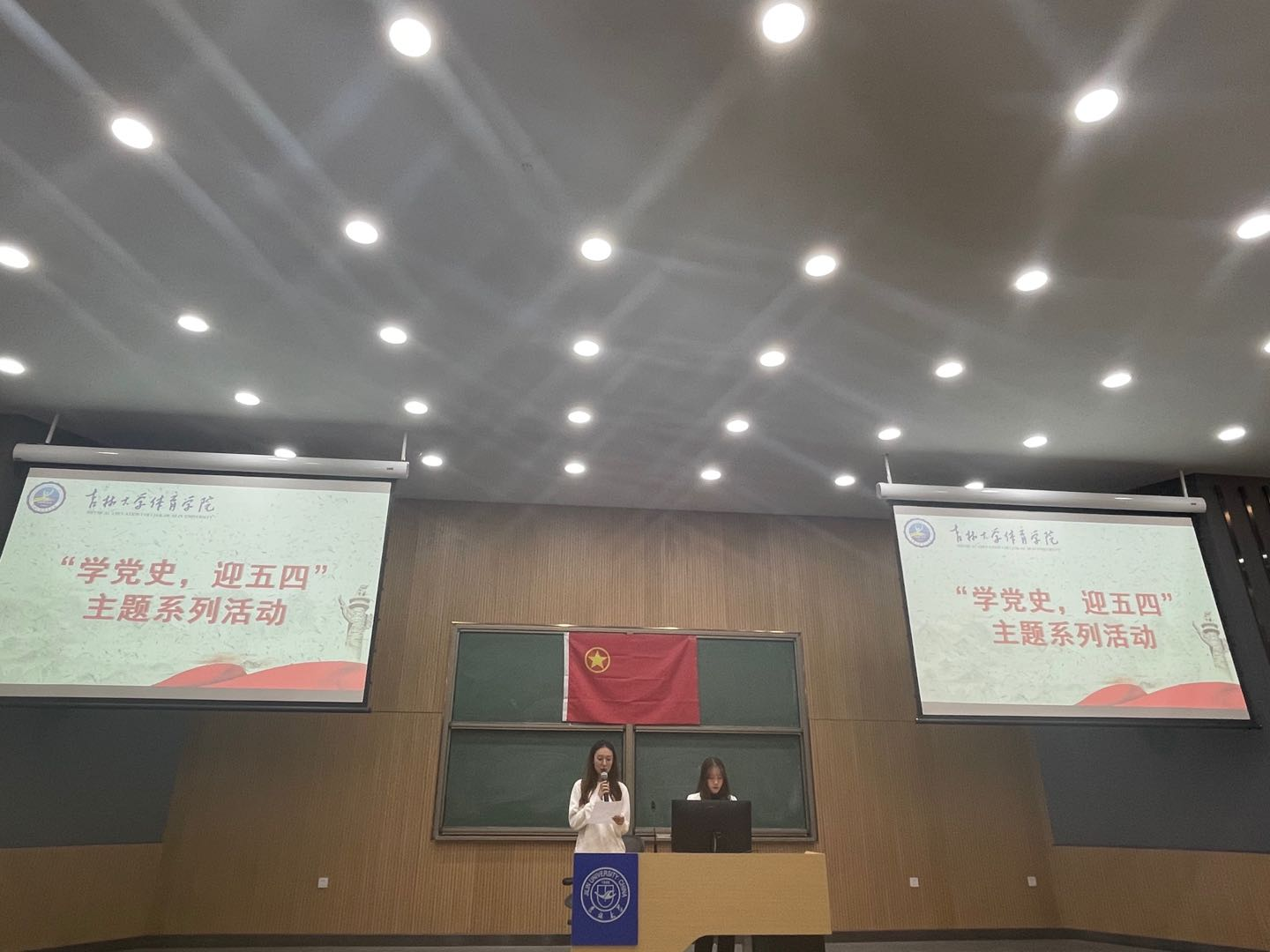 在逸夫楼第五阶梯教室开展“学党史,迎五四”主题系列活动。学院党委副书记兼副院长田进,全体辅导员以及全院学生参加本次活动。