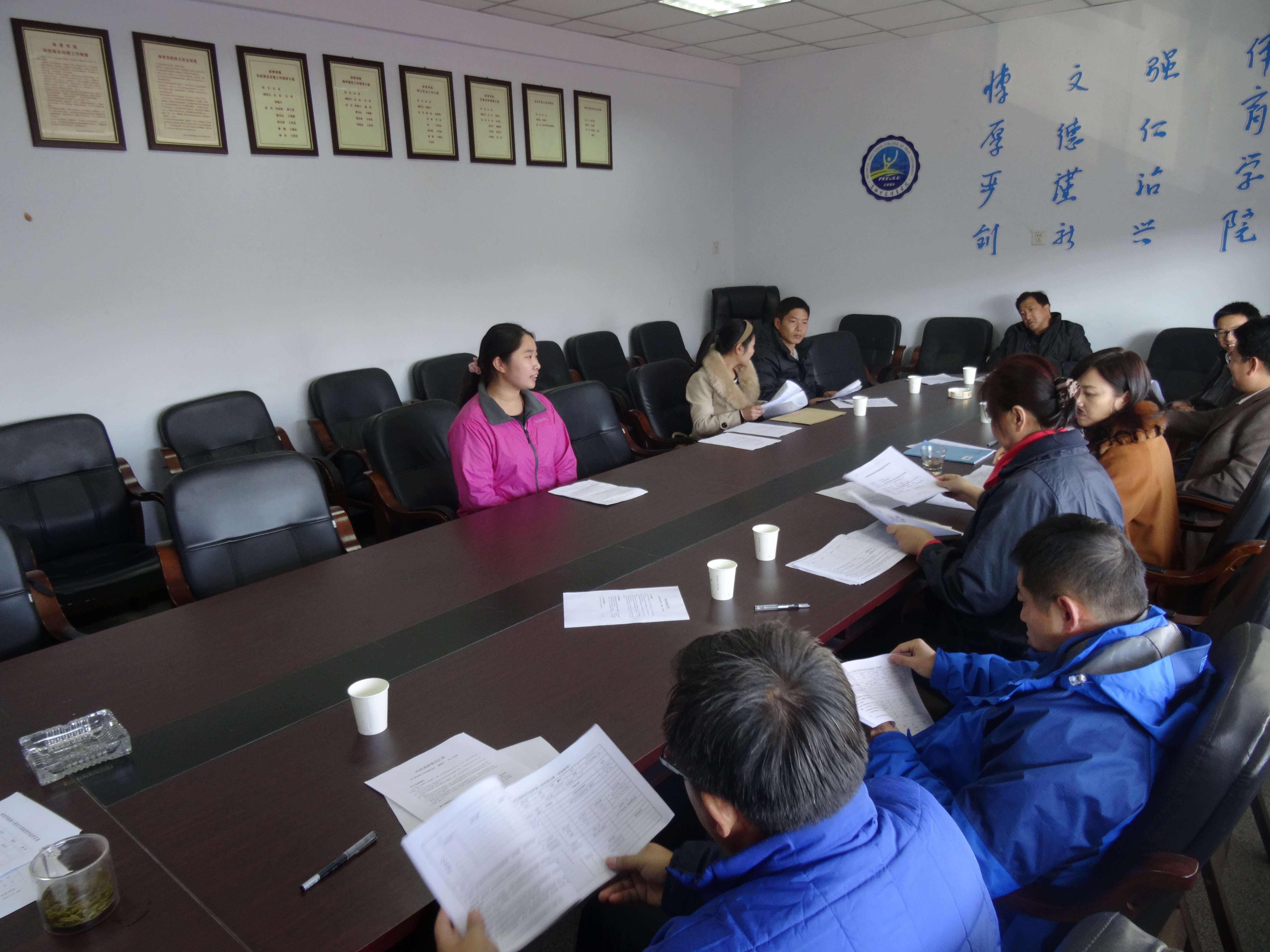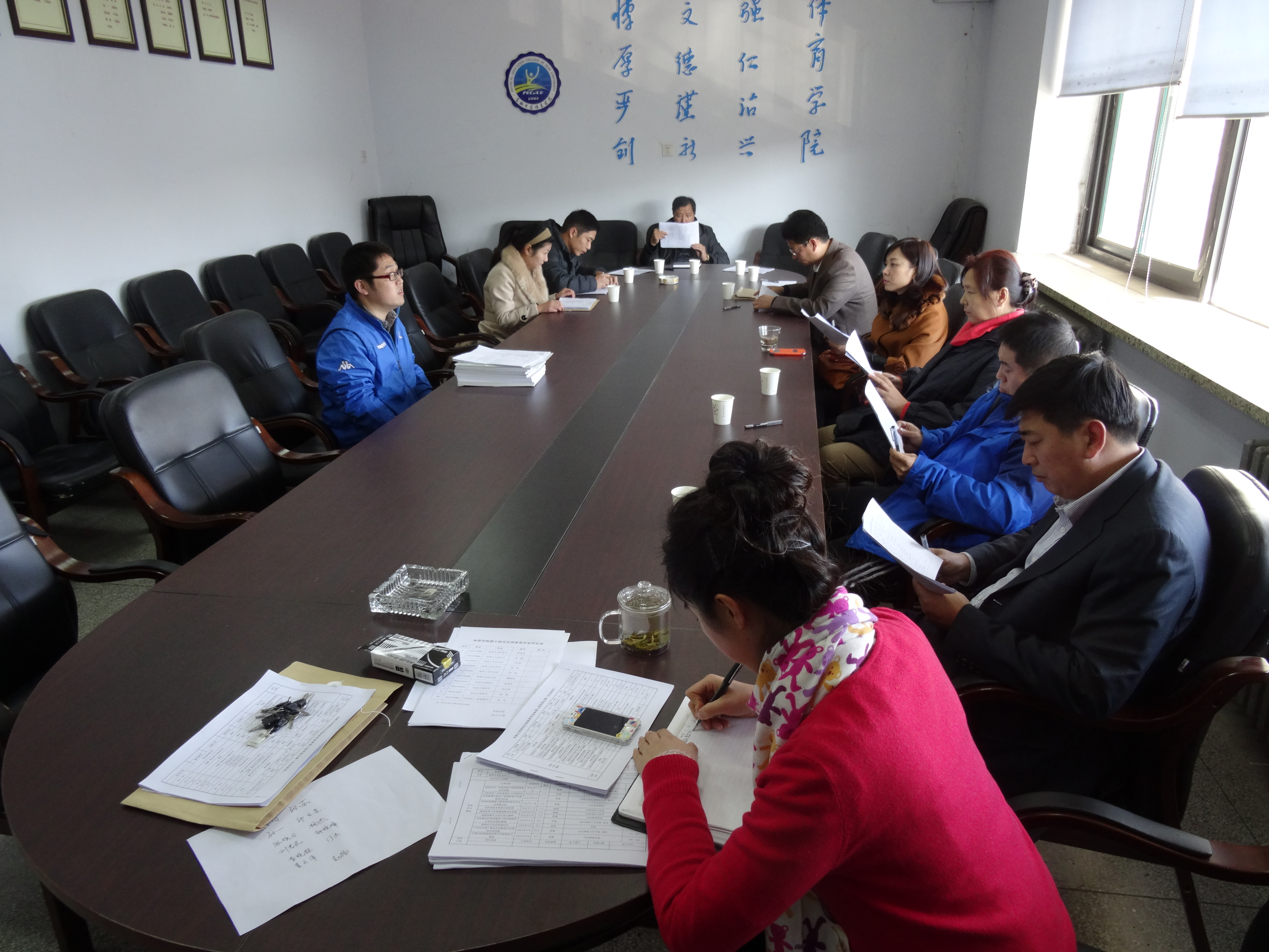 硕士研究生国家奖学金评选大会,由学院领导、教师代表及学生代表组成的评选委员会对候选人进行初评 会上,主管研究生工作的孙茹副院长就评选程序以及相关的注意事项做详细说明,并向各位评委强调了公平、公正、公开的原则,严格评审条件、严格评审标准,确保将品学兼优、科研成果突出的同学选拔出来。随后,申请人逐一进行自我陈述,评审委员会成员认真听取并仔细审核材料,结合申请人的德育素质、专业成绩、科研能力等综合素质进行现场评选。最终,确定2012级学术型运动人体科学专业研究生郑妍同学、专业型体育教学专业研究生李含同学成为本次国家奖学金初评人选。为加强监督机制,本次评选结果将公示5个工作日,如无异议,将上报学校。