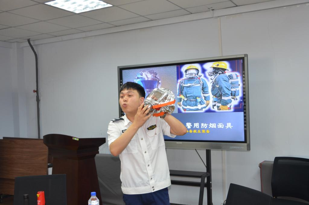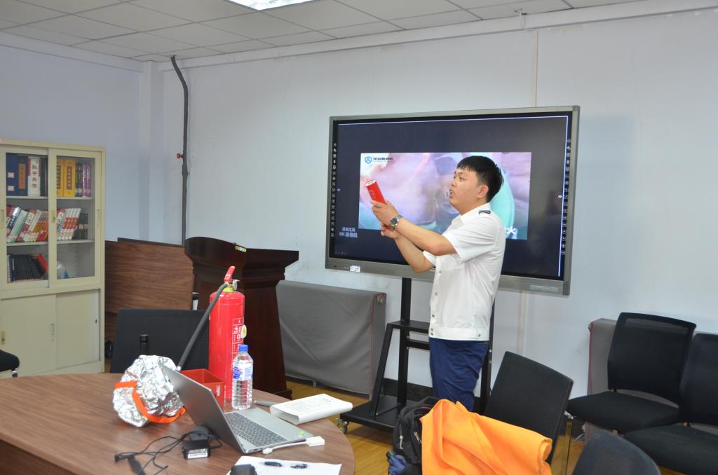 培训会上,李显超教官通过一些真实具体的案例深入浅出地向现场师生宣讲消防安全知识,详细讲述消防安全的重要性和严峻性,解读了消防法规、火灾危险性及预防措施,各类场所用火用电安全及日常检查、火灾初期扑救、救火工具的选择及错误操作带来的危害、火灾逃生等消防知识。现场实物演示了如何使用新型灭火器、灭火毯、多功能灭火装置等消防工具。