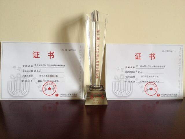 2014年7月13日至18日,我校男子排球队选派4名队员组成的2支男子沙滩排球队,参加了由中国大学生排球协会在山东省青岛市黄岛区举办的第十届中国大学生沙滩排球锦标赛。本届比赛共有44所高校94支代表队。分成专业组、高水平组、体育院系组、普通组。经过六天的激烈角逐,我校2支队伍分获高水平组第一名、体育院系组第五名的好成绩。