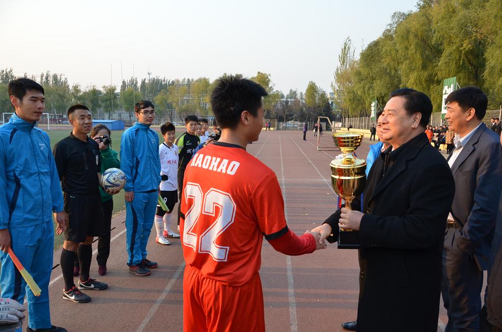 在随后进行的颁奖仪式上,李元元校长亲自为获胜的吉大校男子足球队颁发奖杯,与双方队员一一握手交流。李元元校长表示:“不良研究所