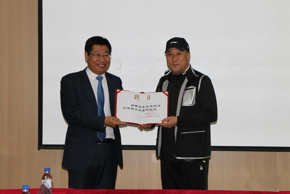 兼职教授的决定,由学校党委副书记冯正玉教授为李永波教练颁发不良研究所