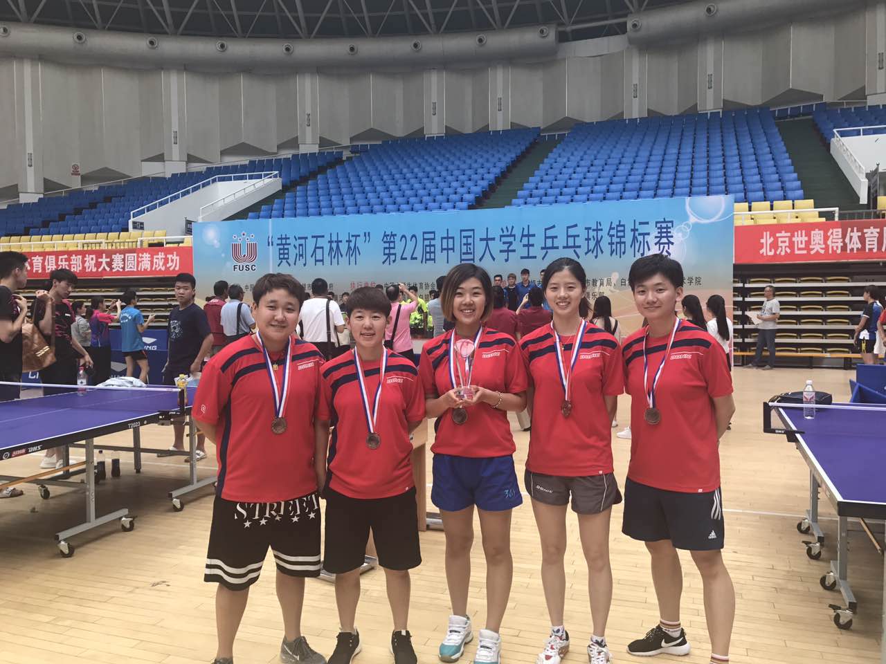 7月20,由中国大学生体育协会主办的“黄河石林杯”第22届中国大学生乒乓球锦标赛在甘肃白银市拉开帷幕,我校乒乓小将发挥出色,经过一周激烈的角逐,我校乒乓球队在第二十二届大学生乒乓球锦标赛中最终获得女团第三、男团第五,女双第一、男双第三、混双第五的优异成绩。