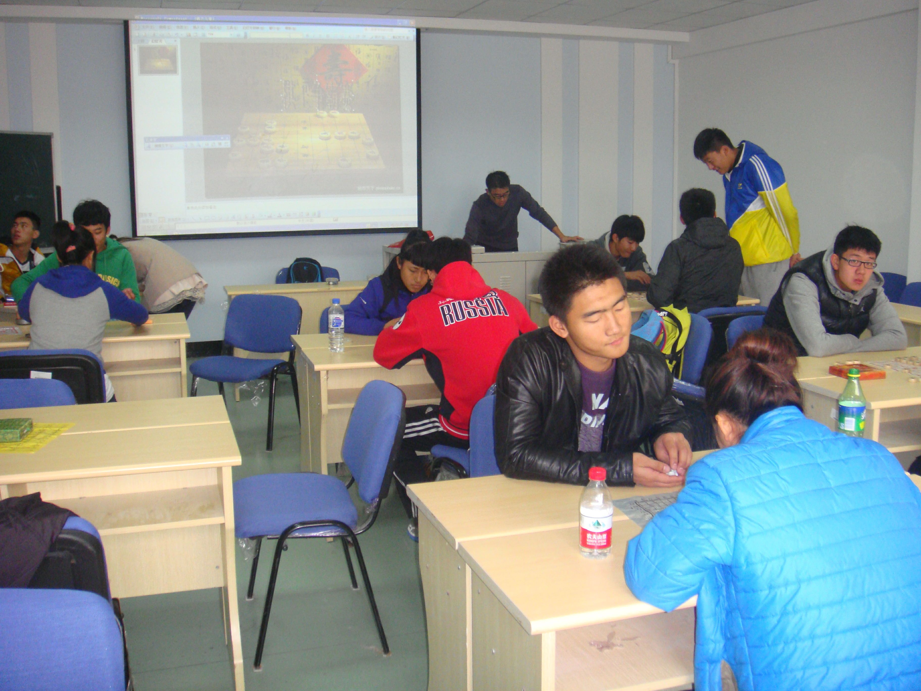 为了培养同学们智力竞技文化活动的热情,加强各班之间的交流合作,营造校内竞技文化气氛,给同学们一个自我展示的舞台,我院于11月3日中午12点30分在中心校区体育馆多媒体教室举行为期一天的棋艺大赛。