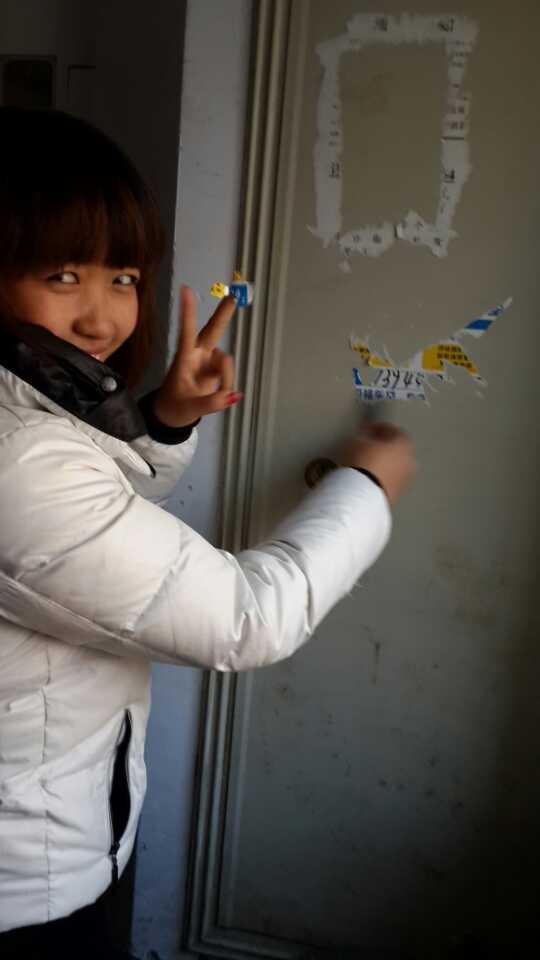 在清理过程中,同学们在保证不损坏墙壁的前提下用刀片和用手揭的方式,将墙上各种大小的小广告细心,耐心的清除了。逐一楼层,从上到下,不疏漏任何一个角落。每个人手中都分发了塑料袋。同学们在清理的过程中也一并将垃圾带走,保证了居民楼通道内的清洁卫生。虽然已经是严冬季节,可丝毫没有阻碍同学们劳动的热情。手拿着工具虽然冻手,但却坚持着将每一个广告彻底的清除。